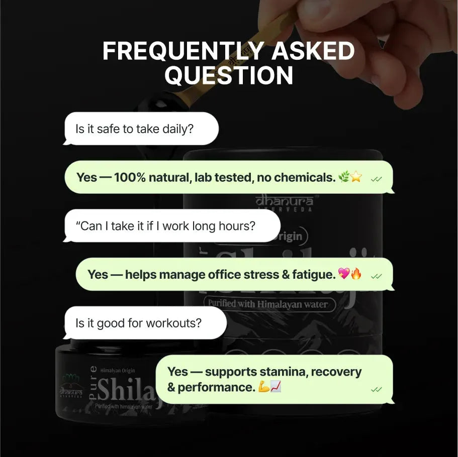 Dhanura Shilajit is lab-tested for 75%+ fulvic acid and sourced from 18,000 ft+ altitude in the Indian Himalayas. It’s processed using a slow, traditional Ayurvedic method and purified with Himalayan spring water for enhanced adaptogenic effect. Unlike low-grade alternatives, we never use synthetic carriers, binders, or preservatives.